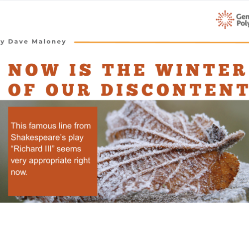- Now Is The Winter Of Our DiscontentBy David Maloney- Here we go again with another weather scare that has inconvenienced the masses and disrupted the flow of our industry. Plants and offices may shut down. Trucks have been postponed. The supply chain has been upended. Company employees are more focused on digging out of their driveway, feeding their families while stores/restaurants are… Read more: Now Is The Winter Of Our Discontent