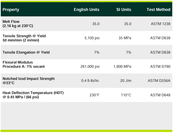 H7035E is a nucleated homopolymer resin designed for injection molding applications requiring anti-stat.