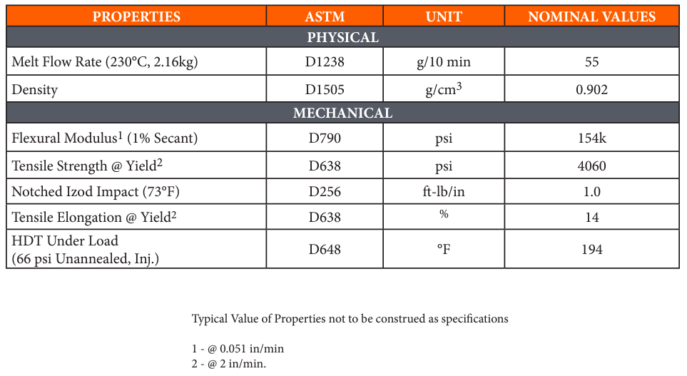 RP-550C is a certified prime resin with clarifier developed for thin-wall, high clarity and high speed injection molding applications. RP-550C combines high flow and easy processability with fast cycling and balanced mechanical properties. RP-550C processing temperature is 205° to 220°C with mold at 20°- 40°C. RP-550CC complies with FDA regulation 21CFR 177.1520 (c)3.1 (a) and most international regulations concerning Polypropylene in contact with food articles.